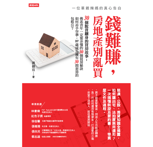 本書包含作者多年來的個人投資房地產的心法分享,以一個單親媽媽的角色,告訴讀者們,買賣房地產不只是砸錢就好,這當中還有許多眉角需要兼顧,才能確保辛苦存下來的錢不會打水瓢……