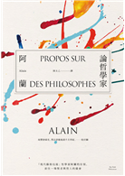 阿蘭的《論哲學家》是繼《論幸福》、《論教育》之後,在台灣出版的第三本哲學散文集。不同於前面兩本散文集,它沒有像『幸福』或『教育』那樣單一的主題,但是在每篇文章中,都會提及至少一位哲學家或一個哲學流派。各篇的文章都以『隨筆』的方式書寫;筆隨意走,未必有明確的主旨,因此不另訂標題,而是像《論語》的『學而』、『為政』、『八佾』等等篇名一樣的方式,以文章的第一句話作為它的標題。