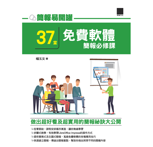 本書是一本透過不同主題與工具進行整合應用的入門學習書,內容將帶著大家一邊使用LibreOffice Impress,一邊結合其他軟體,來完成上台時所需要呈現的效果。本書並沒有太多的投影片轉場與投影片物件動畫效果,而是簡報實務的應用,「工作上需要簡報」的你將不必為了上台如何呈現簡報而感到困擾,因為本書有許多的簡報實務案例及技巧可提供給你。雖說是學習簡報製作的基礎知識,但只需靈活應用簡報工具,即可迅速提升上台的勇氣。