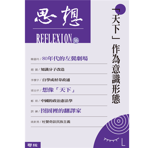 「思想36」的專題是:「天下」作為意識形態。十餘年來,「天下」這個議題不僅是史學與政治哲學的學院問題,還涉及了中國人如何界定自身,如何想像世界,如何想像中國在世界上的位置,具有非比尋常的現實意義。在此中國崛起的時刻,中國大陸知識人對這個概念的思考與運用,自然引起了周遭世界的關注。梁治平教授在這篇文章中,詳細地考察、梳理從趙汀陽、汪暉一直到晚近的多種重要著作,以及產生這些著作的宏觀背景。細讀之後,可以掌握整個「天下」論述的面貌,尤其是天下論述的意識形態脈絡,對讀者的助益極大。本期還有〈杜贊奇教授〉的訪談,以及其他多篇值得閱讀的文章佳作。
