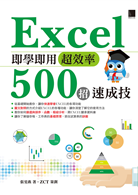 本書為Excel的工具書,依照功能性分為五篇共 500個技巧,每個技巧設計成可在3分鐘之內快速了解,讓讀者能夠利用零碎的時間來學習。日常工作如果遇到操作上的問題,亦可像字典般透過目錄去查閱想要了解的操作技巧,迅速地解決問題。本書透過循序漸進的方式來引導學習,讓你輕鬆上手,不會因為是初學者,就窒礙難行。同時,這500招能夠滿足不同程度者的需求,不僅幫助學會Excel各項功能的操作,也能大幅提升職場的競爭力與優勢,是一本值得擁有的寶典。