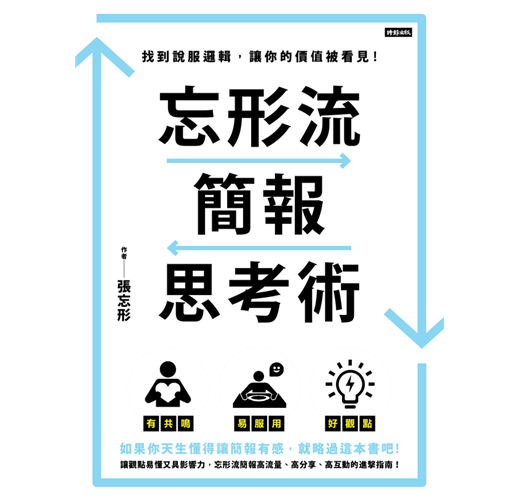 4. 本書是張忘形首度整理忘形流簡報具有高影響力的秘訣,與其自己圖話黑白配,不如看書學,一步步建立好邏輯,打造話語權和聲量。