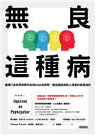 小心那些沒有良知的人就在你身邊!.世上最難防的就是人心,誰真誰假,誰好誰壞,很難從外表看出來。這當中有些人是心存惡意的病態人格者,但這種心理病態並不完全等同於反社會人格,幹盡壞事的喪心病只是其中之一。另外還有一種更可怕的類型是:他們看起來很聰明,人緣極佳,樂於助人,但隱藏在假面之下的他們,精明卻無情。這些無良的人,會用狡猾卑劣的手段,攻擊你的弱點。他們可能會假裝無辜,扮演受害者;又或是用情緒勒索,對你予以脅迫,只為了達到他自私的目的。重點是,這些心理病態者,可能就是你身邊最親近的人──你的家人、另一半、朋友,或同事。