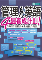 在《管理人英語四週養成計劃》中,曾任職為高階管理中,財務長一職的作者以自身的經驗與讀者分享。在本書中將個案、經驗分享和管理人小偏方做為主體,與理論和實務做了更多的結合。