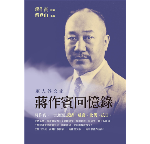 蔣作賓一生奔走國事,從年少參與革命到後來出國外交,在在顯示出他「以國家興亡為己任」的儒家思想。書中〈蔣作賓回憶錄〉為蔣作賓中風半身不遂後,自恐不起,匆匆寫成,篇幅不長,多論政治和外交。另,收錄蔣作賓四子蔣碩傑、六子蔣碩平為紀念父親百年誕辰所作之文章,談他們心目中的父親與家族成員。文史專家蔡登山亦特別撰寫〈張默君曾愛過蔣作賓〉一文,揭開張默君與蔣作賓間的感情祕辛。