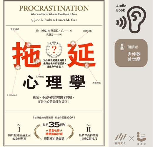 在這本書裡,兩位傑出的心理學家以創新的拖延治療課程為基礎,擷取豐富的諮詢經驗,透過詳盡且幽默的方式,檢視與探索拖延的心理,並找出讓我們擱著事情不做的真正原因,例如對失敗、成功、控制、疏遠、依附的恐懼,以及我們的時間觀念和大腦神經科學等因素。