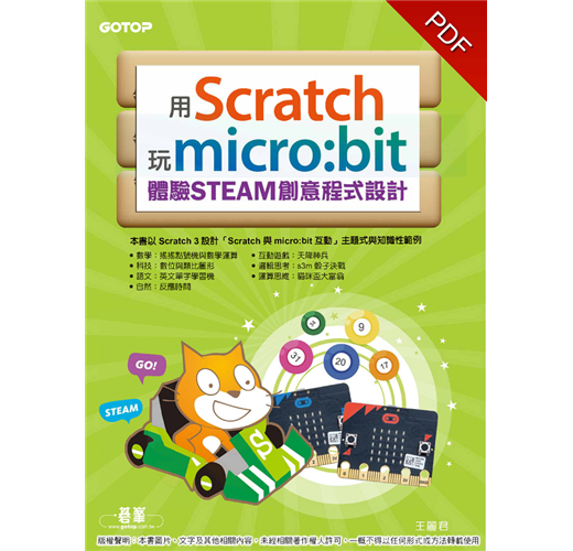 內容簡介:本書以Scratch 3設計「Scratch與micro:bit應用於STEAM」主題式與知識性範例!