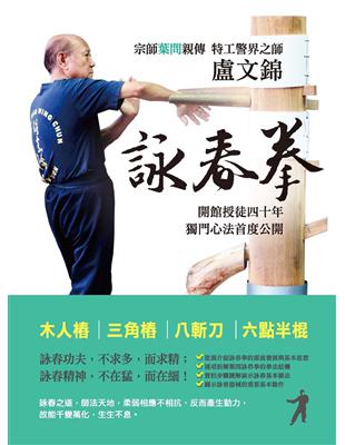 詠春拳貴精不貴多,有生於無、多生於精。作者盧文錦為葉問的親外甥,少承家傳詠春拳學,另又習得擒拿、柔道、特勤搏擊等技法,曾任維安特勤隊創隊教官,本書彙整其多年經驗,從頭介紹詠春拳的源流發展與基本思想,逐項講示葉問詠春拳的拳法結構,並以詳盡的動作圖解實地演示木人樁、三角樁、八斬刀、六點半棍等基本樁法和詠春器械的重要動作,拆解由「小念頭」、「尋橋」、「標指」三個過程組成的拳套,使學習者在練習過程中能學以致用,是學習詠春拳的必備讀物。