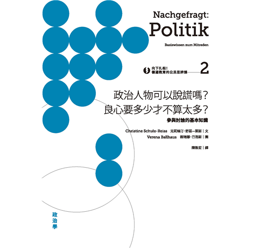 遺憾的是,台灣目前的課綱多半仍為刻版式教學,而非著重思辨,時間安排上也相對壓縮,以致真正接觸到政治課程往往是在大學;這中間顯然出現了斷層。反觀德國高中的必修課程中,除了語文數理外,公民課程也佔了相當程度的比例,像是「政治經濟」、「公民教育」、「社會研究」。透過這本在德國長銷不墜的思辨讀本,我們看到德國學生認識政治事務的途徑,作者是如何以易懂的例子引領讀者思考,並激發興趣。