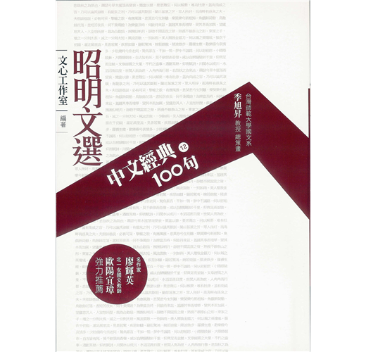 《中文經典100句-昭明文選》內容所介紹的名句有:悲哉!秋之為氣也,蕭瑟兮,草木搖落而變衰、黯然銷魂者,唯別而已矣、文人相輕,自古而然、咸自以騁驥騄於千里,仰齊足而並馳、文章經國之大業,不朽之盛事、裁為合歡扇,團團似明月……等,優美的名言佳句,令人目不暇給。