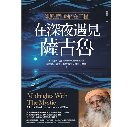◎《在深夜遇見薩古魯》以半自傳的方式,將作者雪柔與薩古魯之間的相處過程,綿密流暢地交織出生命各個面向的深度對談。作者近距離觀察不同面向的薩古魯,讓這位轉世多次的印度上師,呈現出親和、幽默又直指人心的智慧。本書值得一讀再讀,除了揭開這位印度國師的神秘面紗,更能解答人們生活中各種最常見也最難解的人生疑問。——心靈作家、 聖地之旅策劃人/彭芷雯