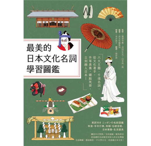 本書囊括日本的飲食、服飾、建築、節慶、傳統藝能、生活用品等六大主題,透過精美圖解與翔實解說,讓你用最簡潔易懂的方式認識各領域中近千項日文名詞,除了中文、日語和羅馬拼音對照外,更詳細介紹名詞背後的內涵與知識,讓你知其一更知其二,不僅加深對日本的認識,更能累積日文實力!