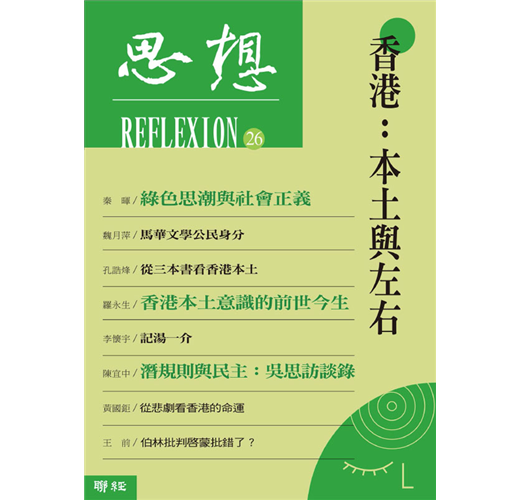 本期《思想》除了聚焦香港,還有文章分別梳理中越邊界的戰爭記憶、探討馬華文學中的身分認同問題、也介紹了馬來西亞華人政治思考的一些糾結之處。此外,秦暉先生對比分析「綠色」(環保)議題在中國與西方所處的政治脈絡之不同,問題意識獨特,見解犀利,對關心環境議題的讀者會很有啟發。