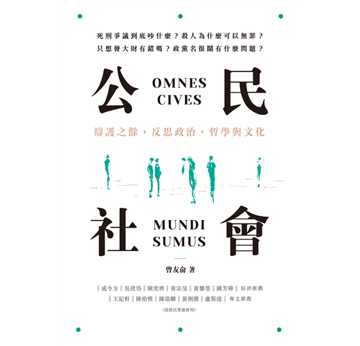 從打開本書第一頁到最後一頁合起,我彷彿也重走曾友俞至今經歷的這趟愛智之旅,並學到許多自己不曾領略過的法律、政治、社會與生活上的觀念與思想。因此,我推薦《公民社會:辯護之餘,反思政治、哲學與文化》做為書桌上的開卷之一。