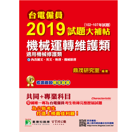 本書收錄台電僱員【機械運轉維護類(機械修護類)】共同+專業102~107年試題詳解,幫助考生熟悉題型,順利上榜。