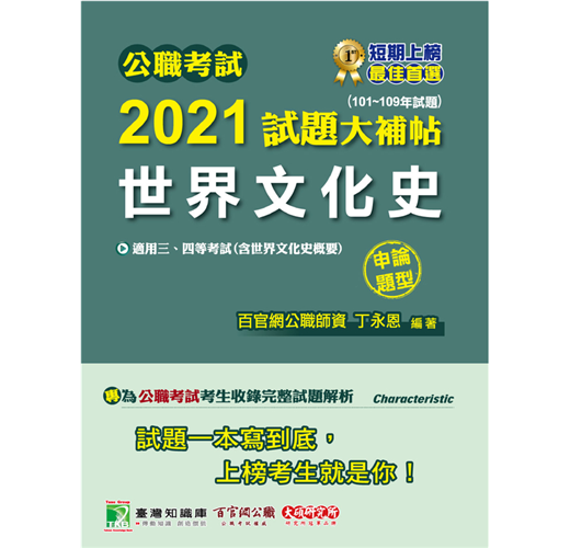 本書收錄公職考試【世界文化史(含世界文化史概要)】101~109年共九年的申論試題詳解,幫助您一次準備全面應戰、熟悉題型順利上榜。