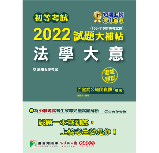 本書收錄公職考試【法學大意】106~110年共五年的測驗試題詳解,幫助您一次準備全面應戰、熟悉題型順利上榜。