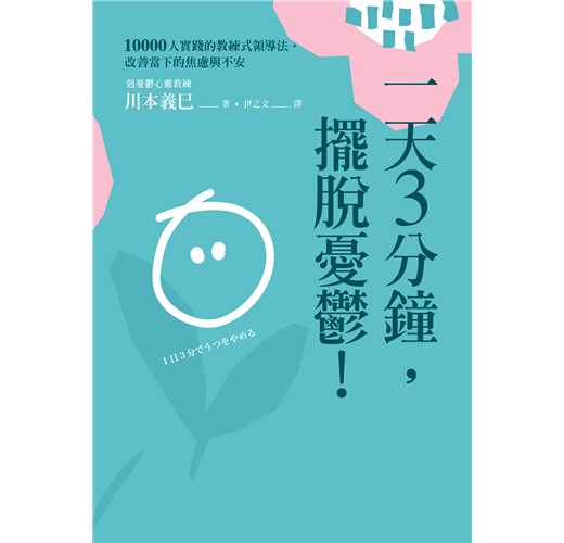 每天3分鐘,幫你找出憂鬱地帶,擺脫情緒低潮!曾被憂鬱症困擾多年的川本義巳,從九年前開始進行教練式領導,以「如何才能安全且簡單地引發變化」為主題,提倡「心靈重開機計畫」,至今已接受超過萬人諮詢,有九成實踐者都表示:「和以前相比,沒那麼低落了!」