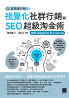 ☆觸及率翻倍的社群交叉行銷與SEO爆紅密笈:社群整合行銷最強攻略、IG與FB雙倍行銷、YouTube影片分享魔術、流量換現金的SEO與社群行銷、Instagram不能說的SEO秘密、YouTube SEO 私房銷售神技。