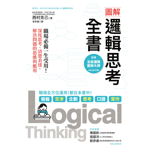 相關著作:《日本全能邏輯圖解大師的超‧邏輯思考工作術:突破自以為是的盲點,48個工作向上的最佳對策》《圖解 邏輯思考的入門書:全方面掌握職場溝通力、說服力、談判力、決斷力及解決力!》《終極圖解力》《圖解 邏輯表達的基礎與訣竅》《1分鐘,強化問題解決力》