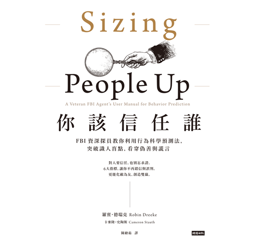 他把自己多年累積的信任判讀術,整理成六大指標,讓我們可以從對方的言語、肢體動作,以及當下的形勢,正確預測任何人未來的行為模式。即使你不喜歡對方,仍可予以信任,進而創造互信互惠的盟友情誼。