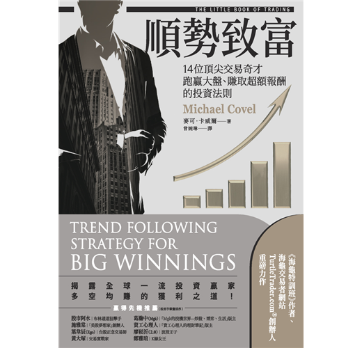 「知名經濟學家班.史坦有句名言:『如果在2008年的金融危機期間你的損失不夠慘烈的話,那一定是有哪裡不對勁了。』當我聽到這句話時不禁想大叫一聲:『這個觀點簡直胡說八道!』我將帶你踏上交易之旅,在這趟旅途中你會遇見14位交易者,並從他們身上學到一些東西。他們都信奉順勢交易的投資理念,幾十年來他們從市場中獲得數十億美元收益。這些真正的交易贏家不吝與我分享賺錢之道,而現在,換我把這些投資智慧與廣大讀者們分享。」──麥可.卡威爾