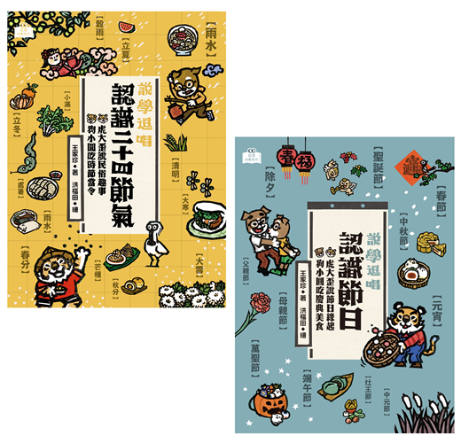 現在就跟著博學多聞的虎大歪和貪吃愛玩的狗小圓,進入節氣與節日的精采世界,認識有趣又富意義的習俗趣事、品嘗超級美味的應景美食,一起說學逗唱吧!