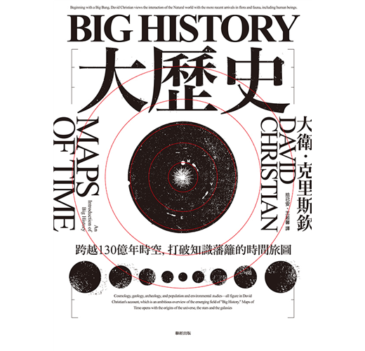 《Big History大歷史:跨越130億年時空,打破知識藩籬的時間旅圖》講述從大爆炸到地球形成,生命起源到現代文明長達130億年的歷史,將人類史融入整個宇宙的時間線。它是新一輪的認知革命,比爾‧蓋茲斥資千萬傾力支持的全球公開課「Big History大歷史計畫」(Big History Project),向全世界推廣大歷史教育;他高度讚賞大歷史改變了我們看待世界的方式。全球史奠基人威廉‧麥克尼爾,將大衛‧克里斯欽的《Big History大歷史》譽為媲美牛頓「萬有引力定律」、達爾文「進化論」的經典著作;既有《人類大歷史》的宏觀視野,也有《時間簡史》和《物種起源》的知識深度,建立起整個世界起源直至未來的時間架構。