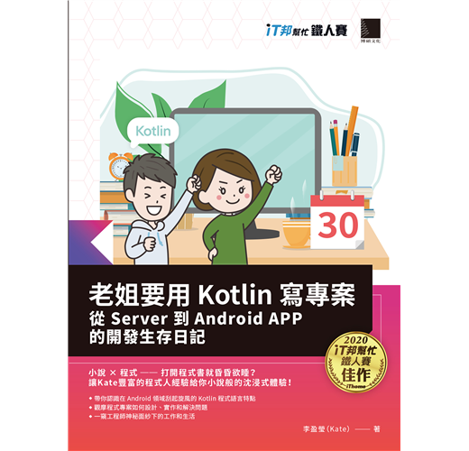 本書內容改編自第 12 屆 iT 邦幫忙鐵人賽 Mobile Development 組佳作網路系列文章 ──《 老姐好像要用 Kotlin 寫專案,能撐 30 天嗎?》。本書旨在鼓勵對程式開發有興趣或是想轉職工程師的朋友,積極學習 Kotlin 程式語言,將 Side Project 列入人生計畫。以弟弟(後端工程師)的視角,描述姐弟使用 Kotlin 進行為期三十天的 Side Project 過程,是一本以輕鬆、帶一點吐槽的文筆進行程式專案開發紀實的日誌。你將從開發準備、Scope 系列函式、問答聊天室結構到雲端訊息 FCM 推播,逐步探索 Kotlin 的美妙之處。