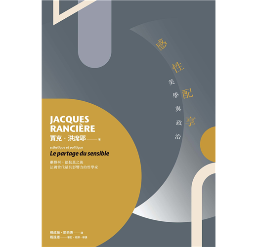 這本書的出版有賴於眾多因緣與各方協助。二〇〇九年,法國當代哲學家洪席耶(Jacques Rancière)訪臺論學,催生一系列讀書會、研討會與講座的舉辦,亦促成《岐義》(La mésentente)、《歷史之名》(Les noms de l’histoire)、《影像的宿命》(Le destin des images)等重要著作之翻譯出版,為臺灣藝術界與學界帶來豐盛的理論風景。不過,另一本濃縮了洪席耶美學與政治精義的著作《感性配享:美學與政治》雖享譽國際學界,屢屢為各領域的論述所引用,卻遲遲未迎來中譯本問世,成為學術出版上一個...