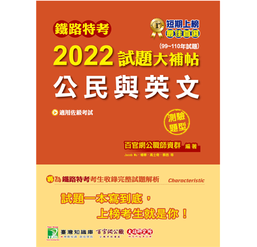 本書專為【鐵路特考】考生出版的解題書,完整收錄鐵路特考佐級【公民與英文】99~110年共12年試題解析。