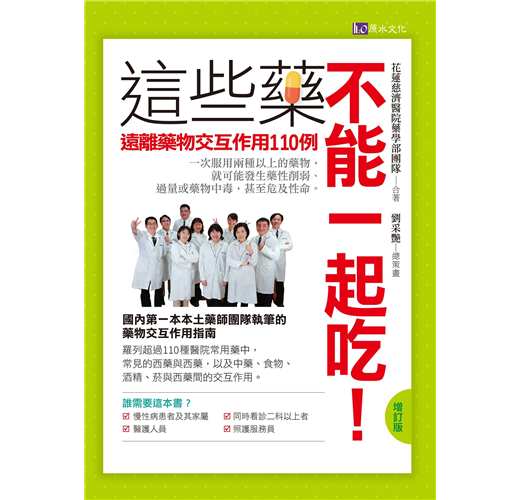羅列超過110種醫院常用藥中,常見的西藥與西藥,以及中藥、食物、酒精、菸與西藥間的交互作用。