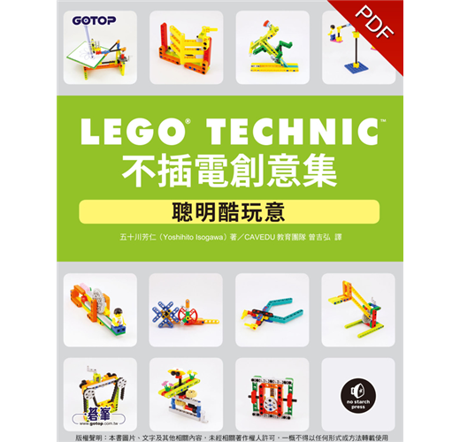 本書精選了106個無須馬達的可愛小裝置,讓您可以親自製作與把玩。每個專題都有不同角度的彩色照片,並標示了所需的樂高科技系列零件幫助您順利完成。各個作品從簡單的舉起、抓取、涉及與量測等實用工具,直到各種用於呈現機械工程原理的小裝置。