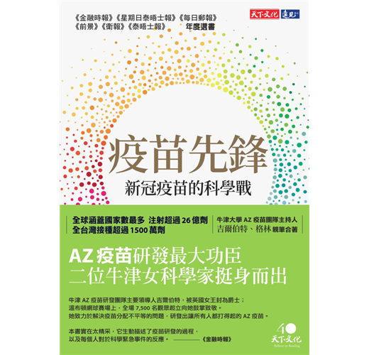天下文化順應COVID-19疫情出版一系列報導疫苗相關書籍,像是AZ與BNT疫苗在面對疫情危機時刻展現創新爆發力而研發上市的過程,令人動容,近日台灣本土疫情趨於平緩,正是回頭關心台灣疫苗產業發展的好時機。