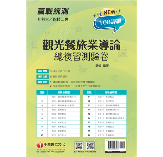 全卷試題是依最新108課綱命題趨勢編寫,共20回,每回25題,且以課本之篇章作為分類。熟讀課本搭配總複習測驗卷練習,相信可以確實掌握課程要義,在升學之路立於不敗之地。