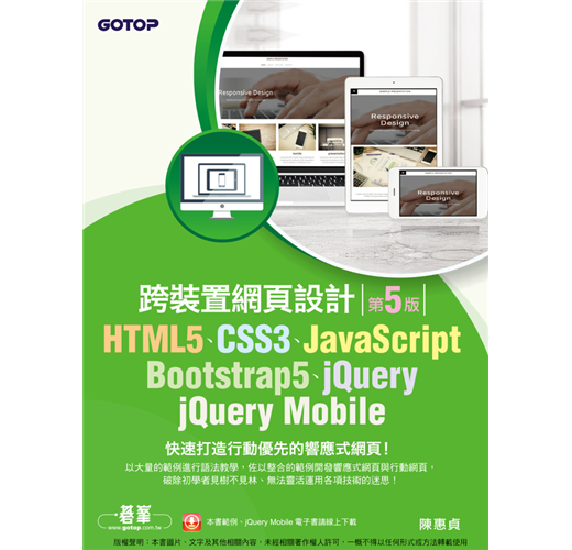 以大量的範例進行語法教學,佐以整合的範例開發響應式網頁與行動網頁,破除初學者見樹不見林、無法靈活運用各項技術的迷思!