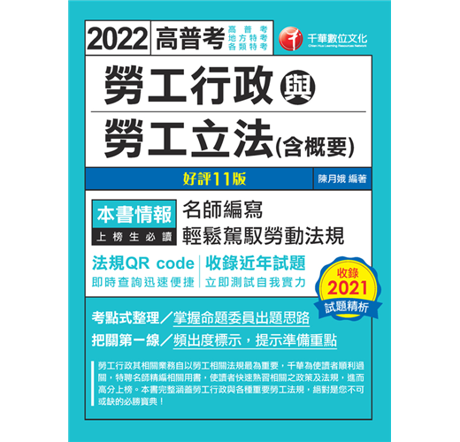勞工行政其相關業務自以勞工相關法規最為重要,千華為使讀者順利過關,特聘名師精編相關用書,使讀者快速熟習相關之政策及法規。特別提醒的是,勞動法令的修正頒布,影響人資業務至鉅,建議時刻關心勞動部的修正重點與背景說明,除了可上全國法規資料庫查閱最新法令之外,勞動部的網頁上,最新政策說明與立法重點懶人包,也是可以快速掌握修法重點的有利捷徑。同時若能多閱讀與勞工議題相關的報導,以及翻閱勞動部出版的〈台灣勞工〉(雙月刊)以及勞動力發展署出版的〈就業安全〉(半年刊),深信對於現況的瞭解會有更多的幫助,可有效應付部分時事題目的出現。