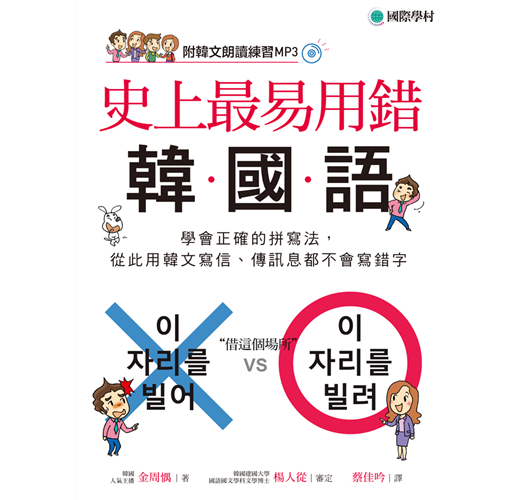 ★母語人士人說的,就一定是對的嗎?人們通常會有種迷思,覺得母語人士說的、寫的就一定是對的,但事實上真的是這樣嗎?這種現象無所不在,不管你學的是哪國語言,聽到母語人士開口,我們下意識都會認為對方是對的,而我們說的是錯的,但這其實是一種認知錯覺。就好比我們聽到一位美國人劈哩啪啦說了一大堆,乍聽之下覺得「哇~啊」,回頭細想才發現,對方的話毫無文法可言,或是對方的用字遣詞並非教科書上教的正規用語,多屬於俚語或流行語,意即這些俚語、流行語都不是課本上所說的「正確用語」。這情況在韓文這種表音文字中更為常見,尤其現今網路發達,大家學習韓語除了坊間補習班與市售教材之外,接觸最多的大概就是電視廣播媒體,或透過通訊軟體與韓國朋友語言交換。可是透過這兩個管道學到的韓語,有極大部分屬於流行用語,許多韓國人用通訊軟體聊天時,為了求快根本不顧用字對錯,看得懂就好。剛接觸韓語還不懂得辨別對錯的學習者,在這種學習環境下,久而久之習慣這些非正規的用法,有時甚至以為這就是正確的,結果應用到考試上,被扣分時才發現原來是錯的。本書挑選的詞彙,就連韓國人日常生活中也很容易混淆。讓我們跟著SBS主播金周㥥一起用思考、理解的方式輕輕鬆鬆把這些正確的用法學起來,讓你的韓國朋友都驚訝,你的韓文比他們的還要好!