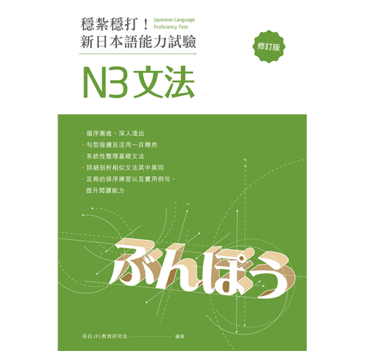 日本語能力試驗N3,是2010年7月考試改制時才設立的全新級數,難易度介於舊二級與舊三級之間。由於新制改制後,主考機關就沒有公布所謂的「出題基準」,因此N3級數並不存在著所謂的「必考句型」。坊間許多參考書編寫時由於無所適從,許多書籍就只是將舊二級較簡單的部分與舊三級較困難的部分挑出,組合成N3文法書。但經作者群詳細分析2010年7月至2018年12月份共18回實際考古題後發現,N3除了會考出一些舊三級未曾學過的新句型外,還有許多的考試項目都看似在N4時學過,但考得更進階。例如舊制三級考出了樣態助動詞「~そうだ」其動詞與形容詞的現在肯定的用法,如:「雨が降りそうです」、「このリンゴは美味しそうです」。但 2011年的七月份的N3考試就出題「何年働いても自分の家は買えそうもない」這種「可能動詞+樣態助動詞否定形」的進階用法。本書企劃時徹底分析考古題,將這些有可能出題、或已經出提過的進階表現一網打盡,同時也參考了日本具代表性的數本中級前期教材所編寫而成,內容相當完整、詳細。