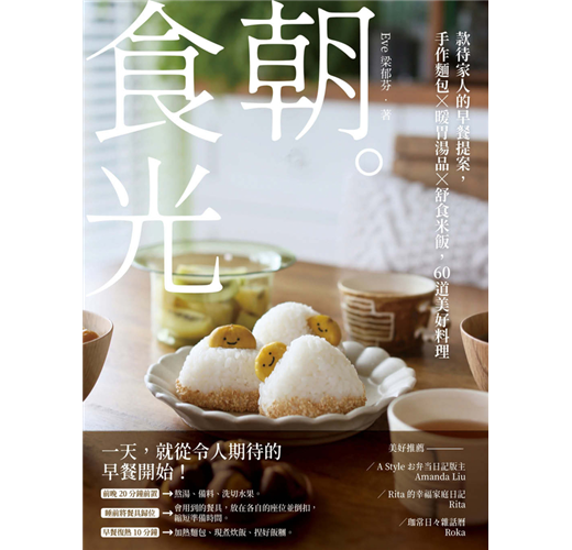 如果,妳也期待孩子作息固定,每天精神飽滿上學去;如果,妳也期盼廚房餐廳熱熱鬧鬧充滿溫度,讓家的味道陪伴孩子長大、替先生更為自己帶來幸福感,那麼不妨從早晨的第一餐開始。我們可以吃得很簡單,也可以替餐桌添點變化,只要善用前一天零碎的時間,多堅持一點點,妳將會發現,日日累積的廚事不僅成就一家人的健康,更能成為妳的養分,熟練的廚藝將會幫助妳即便油裡來火裡去,依舊得心應手,出了廚房仍可以活出自己,燦爛如花。