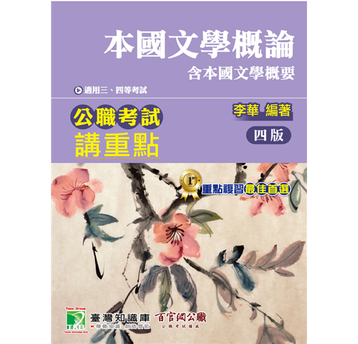 第一章 傳統文學概論 一、文學的定義 二、傳統文學史 三、文學評論 第二章 古典韻文流變 一、詩經 二、辭賦 三、詩歌 四、詞 五、曲 第三章 古典駢文散文流變 一、駢文 二、散文 第四章 古典小說流變 一、先秦神話與寓言 二、魏晉南北朝小說 三、唐代小說與變文 四、宋代話本 五、明代小說 六、清代小說 七、章回小說和傳奇小說的比較 第五章 現代文學思潮與流派 一、白話文運動 二、新文學觀念的形成 三、新文學流變 第六章 臺灣文學概論 一、臺灣文學發展史 二、臺灣古典文學 第七章 臺灣現代文學流變 一、日治時期新文學運動 二、臺灣現代文學流變 三、臺灣原住民文學 第八章 臺灣現代散文 一、現代散文分類 二、臺灣現代散文流變 第九章 臺灣現代小說 一、臺灣現代小說分期 二、臺灣現代小說流變 第十章 臺灣現代詩 一、臺灣現代詩分期 二、臺灣現代詩流變