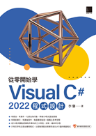 這是一本針對初學者認識程式語言的入門書,是以著墨於程式語言特色和語法的形式,導引學習Visual C#程式語言,以.NET提供的類別庫為範本,配合Visual Studio 2022整合式開發環境,加上愈來愈有智慧的AI輔助IntelliSense功能,可以依據使用者撰寫程式的習慣,讓所編寫的程式保有一致性,避免不必要的錯誤。無論是使用哪一種語言,皆能在共通語言執行環境下,發展出跨平台的應用程式。對於Visual C#語言有興趣,又想要對.NET類別庫有更多認識的讀者,可透過本書獲得通盤性的瞭解。本書以最嚴謹的態度,輔以最精要的表達方式,期許能降低閱讀壓力,筆者深信本書能讓初學者經過Visual C#的學習之旅,繼而開啟編寫程式語言的更多樂趣。