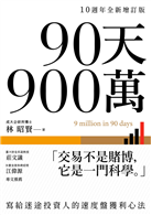 很高興有機會幫林昭賢教授的《90天900萬》全新增訂版寫推薦序。書中第一部分敘述林教授沒有在期貨虧損時砍倉導致大幅度虧損,也影響其身心健康。之後林教授在嘗試使用動能交易策略的「試單、加碼、走」後,大幅度的提升交易獲利績效。在〈第5章〉中,林教授詳細的提供了多頭和空頭的速度盤型態,讀者在熟悉這些速度盤型態後,多加模擬練習應該可以大幅度的提高投資獲利機會。