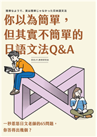 本書就是蒐集了這樣看似簡單,但實際上沒那麼單純的N5文法,並以Q&A的方式呈現,因而取名『你以為簡單,但其實不簡單』!「本篇」總共有60個文法Q&A,「附錄」部分則是整理了「〜が」、「〜を」、「〜に」、「〜で」、「〜は」這五個擁有很多不同用法的助詞。雖然說這些Q&A篇篇獨立,但其實前後皆有緊密關聯,而且前面的篇章比較簡單,後面的篇章比較困難,建議讀者從頭開始閱讀,較為順暢。