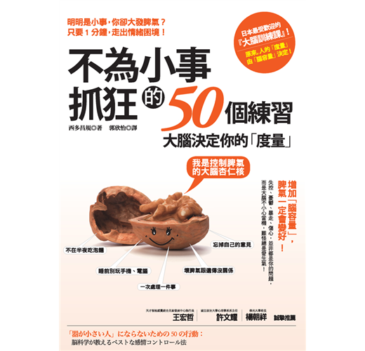 這套「50個大腦練習」在日本已幫助無數人從「失控」中走出,對象、背景、環境都不是問題,只要你願意給自己一個機會,從小習慣開始改變,將方法融入於生活,讓大腦喘口氣,很快就能跟過去易怒的自己說再見。