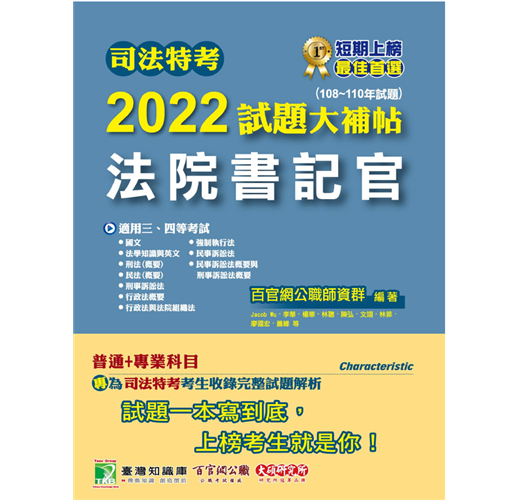 本書專為【司法特考】考生出版的解題書,完整收錄司法特考(三等/四等)普通+專業科目【法院書記官】108~110年共三年試題含解析。