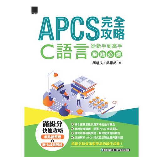 同時也可以參考附錄的內容來幫助自己熟悉 APCS 的測試環境。此外,為了讓學習者以較簡易的環境撰寫程式,本書所有程式以 Dev C++ 的 IDE 進行程式的編輯、編譯與執行。希望透過本書的課程安排與訓練,可以讓學習者培養出以 C 語言應試 APCS 的實戰能力。