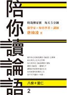 本書收錄〈八佾篇〉、〈里仁篇〉。作者唐瑜凌先生,學自前大成至聖先師奉祀官府主任秘書李炳南老教授及徐醒民老師,親受李炳南老教授《論語》課講學指導,薈萃李炳南教授及徐醒民老師講授《論語》之精華。讓唐老師用淺顯易懂的文字,陪你讀懂這部流傳兩千年的經典語錄《論語》。