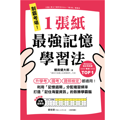 我們的大腦,具有將不重要資訊「定期出清」的機制。因此學習最重要的就是「複習」。本書中的「大量記憶法」就是透過掌握大腦清除記憶體的時機,計畫性安排複習的頻率,「趁忘記之前快速回想」,讓記憶常保如新!