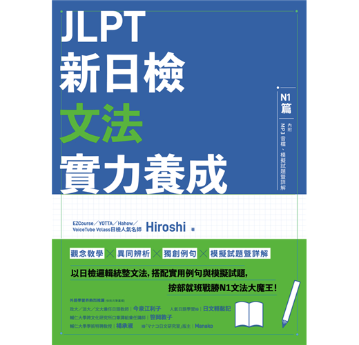 N1與N2難度落差極大,就算是日文系本科生也未必能一次通過,關鍵在於N1考題時常出現大量冷僻文法,正因為鮮少運用在日常生活中,學習者只能仰賴教科書來吸收,本書透過Hiroshi老師簡單明瞭的說明及統整,按照﹝觀念分析﹞→﹝例句示範﹞→﹝實戰測驗﹞→﹝試題詳解﹞四步驟,扎實掌握N1文法實力,讓你不再因為文法而N1落榜。